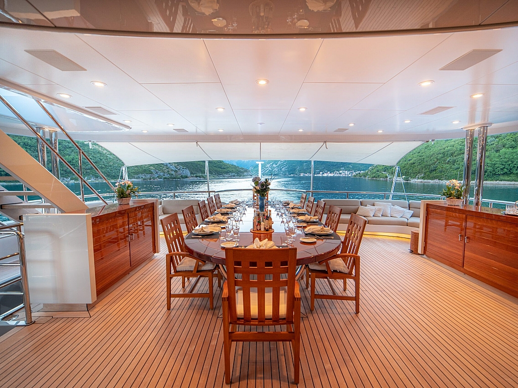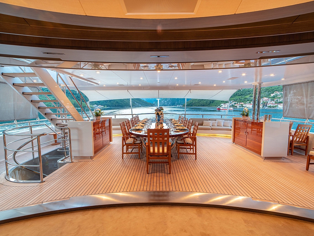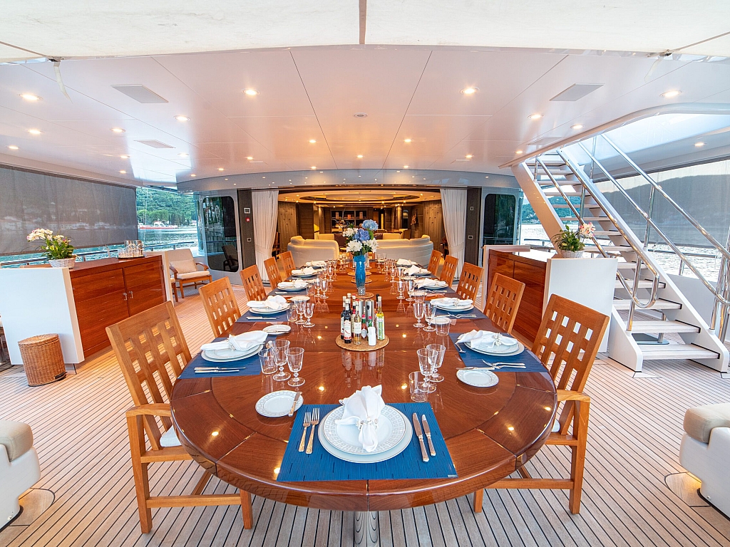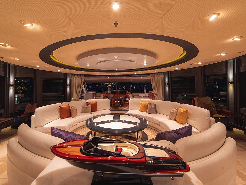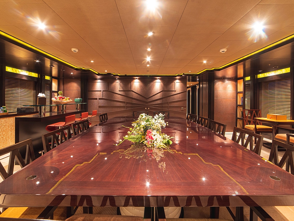 PRICING STARTS FROM 500,000€/week Low Season + VAT if applicable + 30%APA + delivery fee MY Trident sleeps up to 12 guests in 8 rooms, including a master suite, 1 VIP stateroom and 5 guest staterooms. She is also able to carry up to 17 crew.